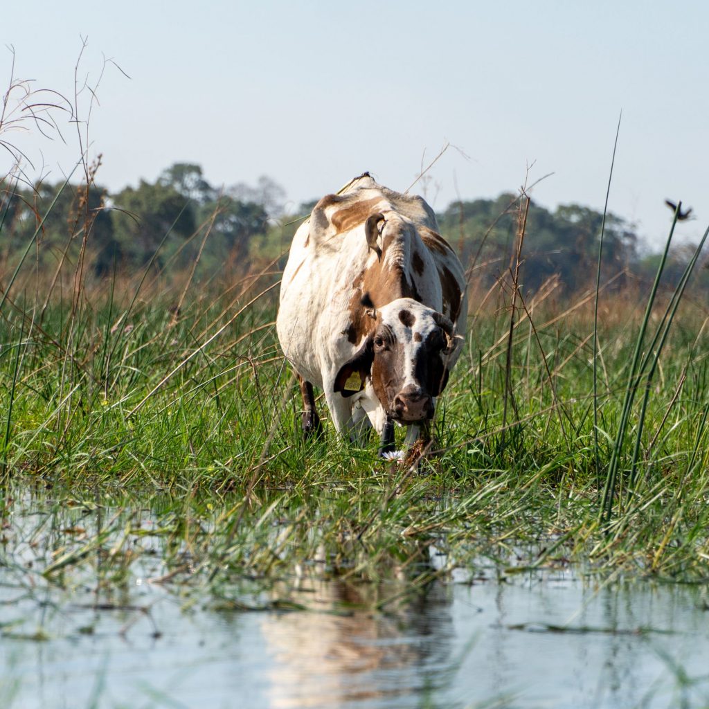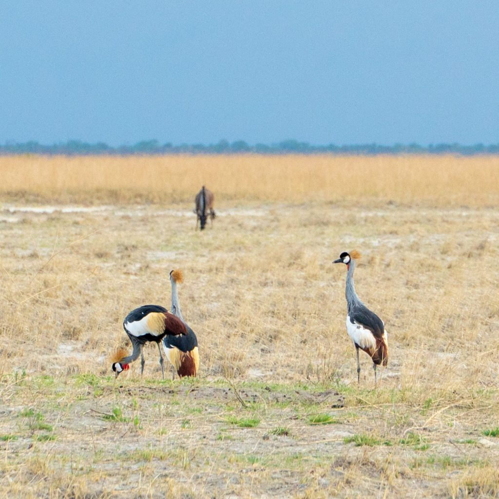 In the distance we spot zebra, wildebeest and many cows that have strayed into the national park without paying the entrance fee. On a little walk around the dry floodplains we also spot aardvark holes and stumble over elephant dung that is nurturing a small mushroom farm. Overhead the helicopters are circling for the vastly richer tourists to take in the whole delta in all its glory. For us poor schmucks on the ground it’s more pleasant than spectacular.