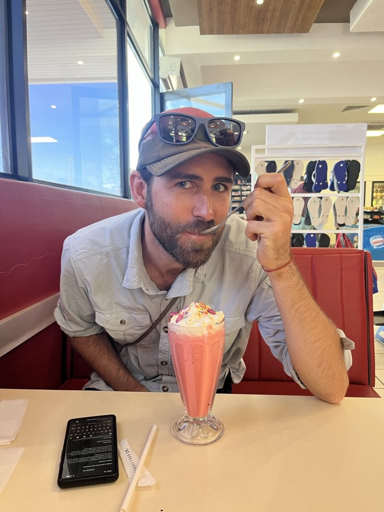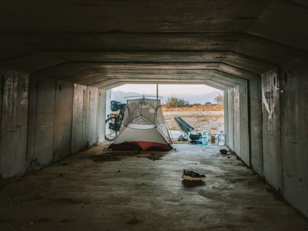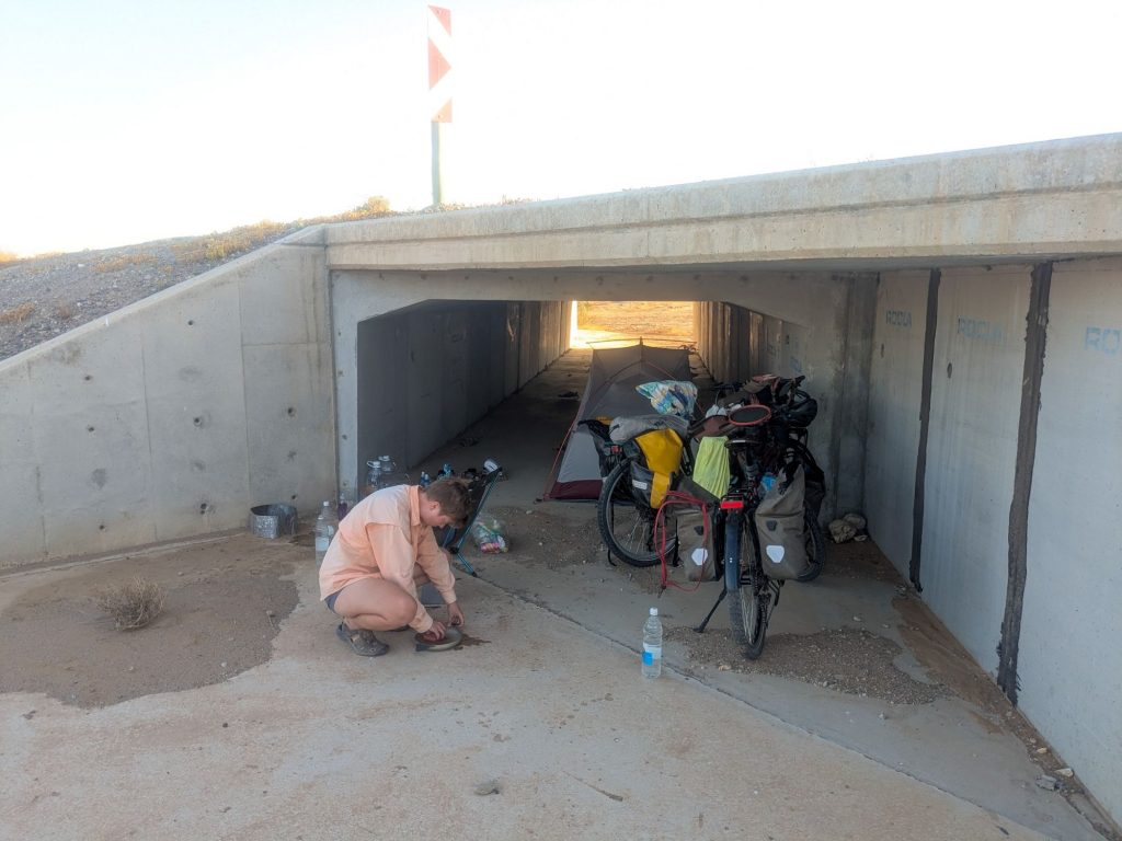 Enter Freddy and Henry. They nurse our spirits back to health with a nice chat, cold drinks and delicious peaches. Trail magic is a wonderful thing. Whether it’s some biscuits, cold water or just a thumbs up. We never expect it (except when we’re a bit full of ourselves) and are always stutteringly grateful when it does happen. This is where Ben’s English awkwardness shines the brightest. Refreshed in body and soul we cycle on and finally leave the cursed gravel. Tonight we are camping under a bridge and are already thinking of riddles to pose to passersby.