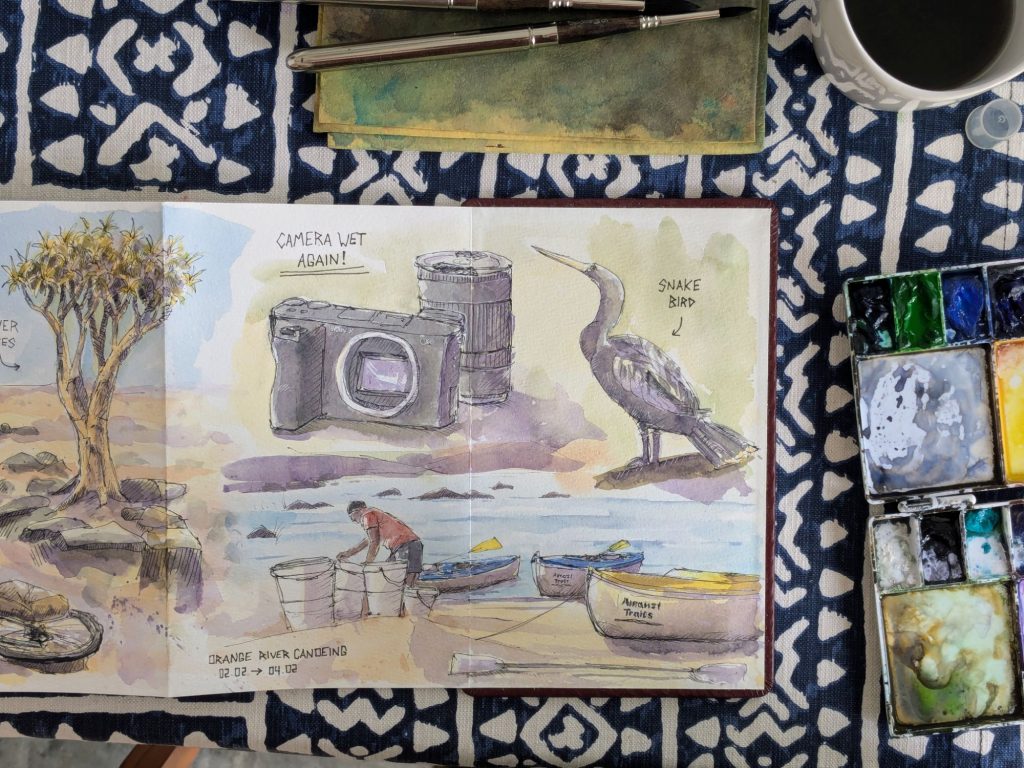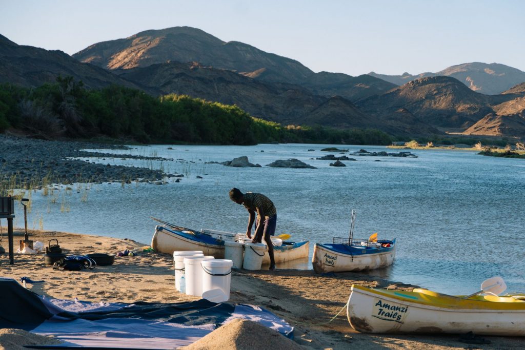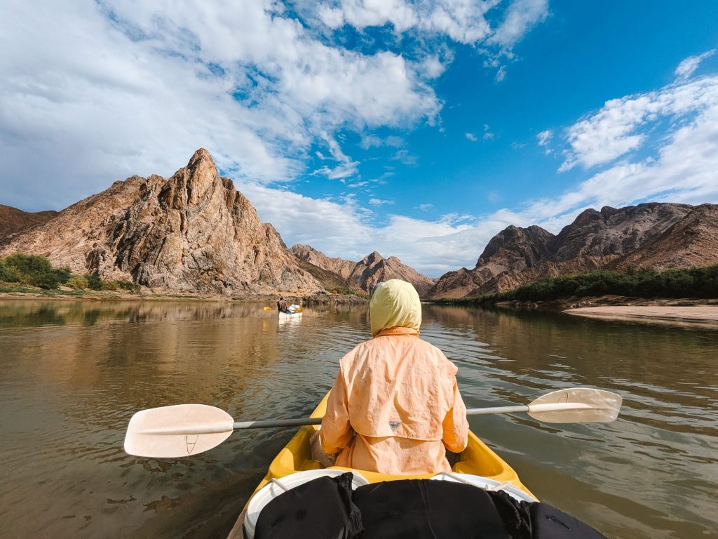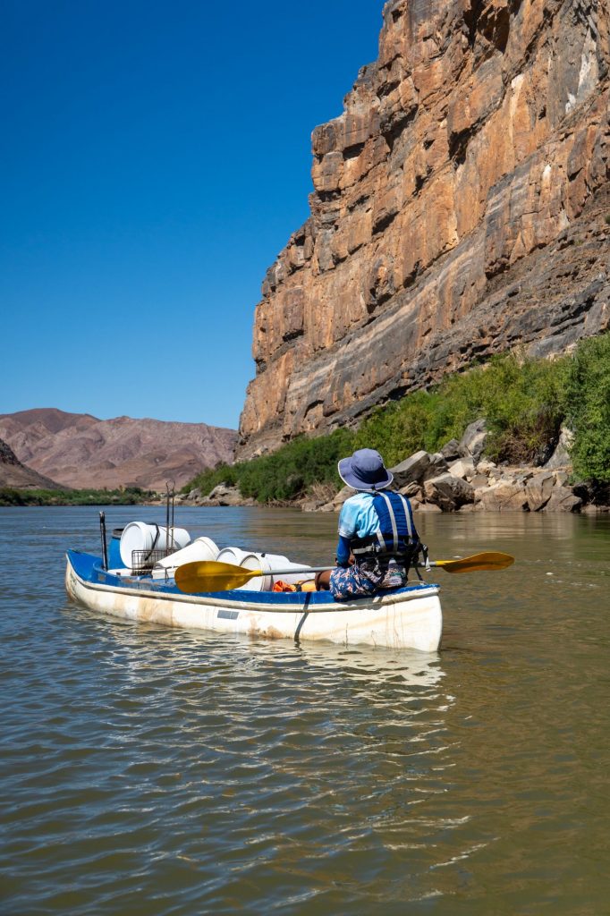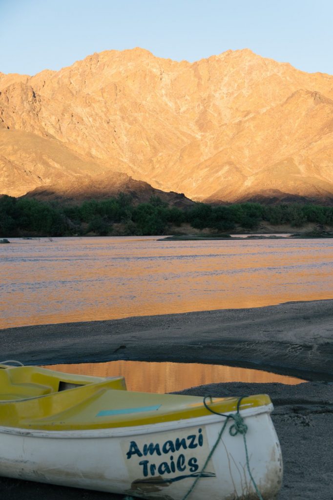 We finish the rest of the trip without any major mishaps. Though we go down one of the rapids backwards and generally turn the canoe too much or not in time it doesn’t spit us out again. The river snakes its way through the Richtersveld mountains and everything is red, black and brown rock. Sometimes the strata go crazy and form waves or the face of a gorilla. The only vegetation is right next to the water and feels out of place in an otherwise harsh landscape. Snake birds and herons flutter up indignantly when we get too close.
