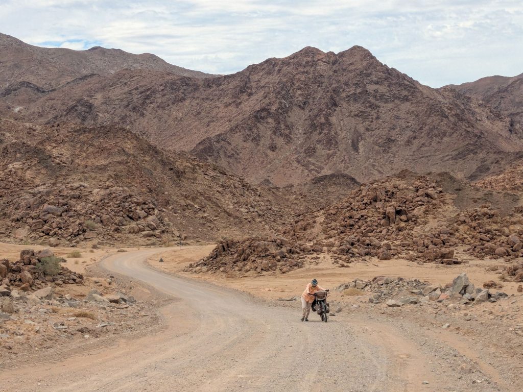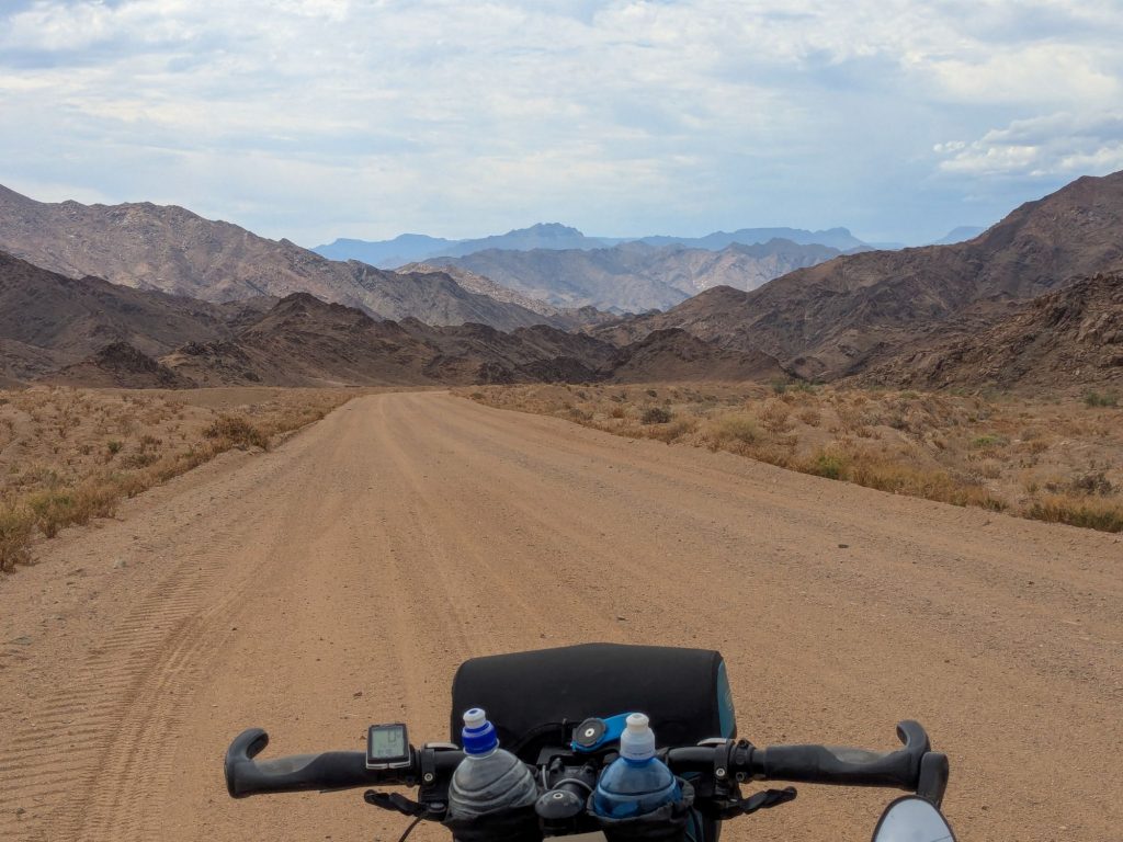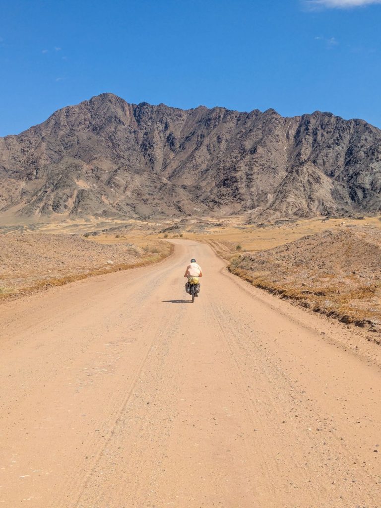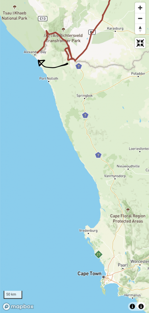 All in all we’re happy with our little side trip. It felt way more adventurous than expected. We now start the last push to the coast. We’ve heard that the gravel road that will take us most of the way there is “an apologetic hug” that supposedly compensates for all the bad gravel roads we have endured in Namibia. The hug turns out to be more like an overly firm handshake. On the last washboardy and steep ascent back to tarmac Lina is getting quite whiny. She is done with the heat and done with false promises about road conditions.